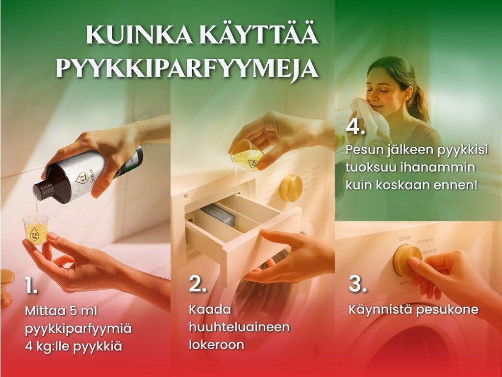 Ne mettez pas le parfum dans le tambour de la machine à laver ou dans le sèche-linge. Ils sont destinés à être utilisés dans le récipient de l'assouplissant. Vous n'avez pas à craindre que votre linge perde son parfum après avoir séché dans le sèche-linge. Les parfums Giovani® sont résistants aux influences extérieures et durables. Le linge lavé garde son odeur même après avoir été séché au sèche-linge. La température optimale de conservation des huiles de lavage est d'environ 15 à 25 degrés Celsius.
