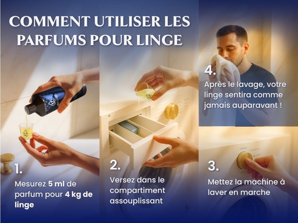 Utilisation: Verser 5 ml de concentré dans le bac de l'assouplissant. Cette quantité correspond à une dose pour 4 kg de linge. Le concentré n'est pas dilué. Pour le dosage, vous pouvez utiliser le bouchon du parfum Giovani®, correspondant à 3 ml. Nous recommandons d’appliquer 2 doses du bouchon. Pour un dosage plus confortable, vous pouvez acheter une pipette graduée avec notre logo ou une pompe doseuse alternative. Il suffit donc d'utiliser une petite quantité et votre linge sera parfaitement parfumé!