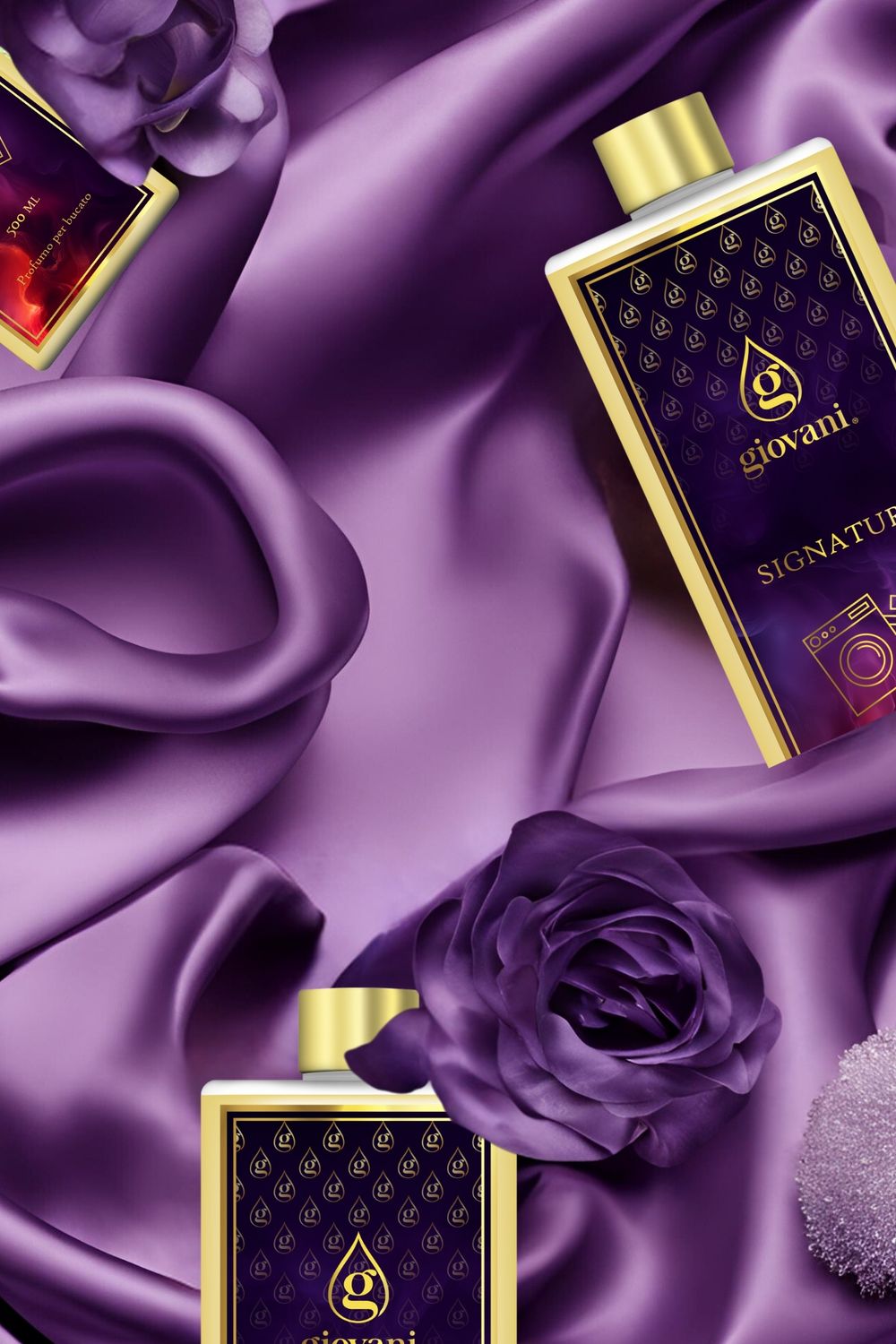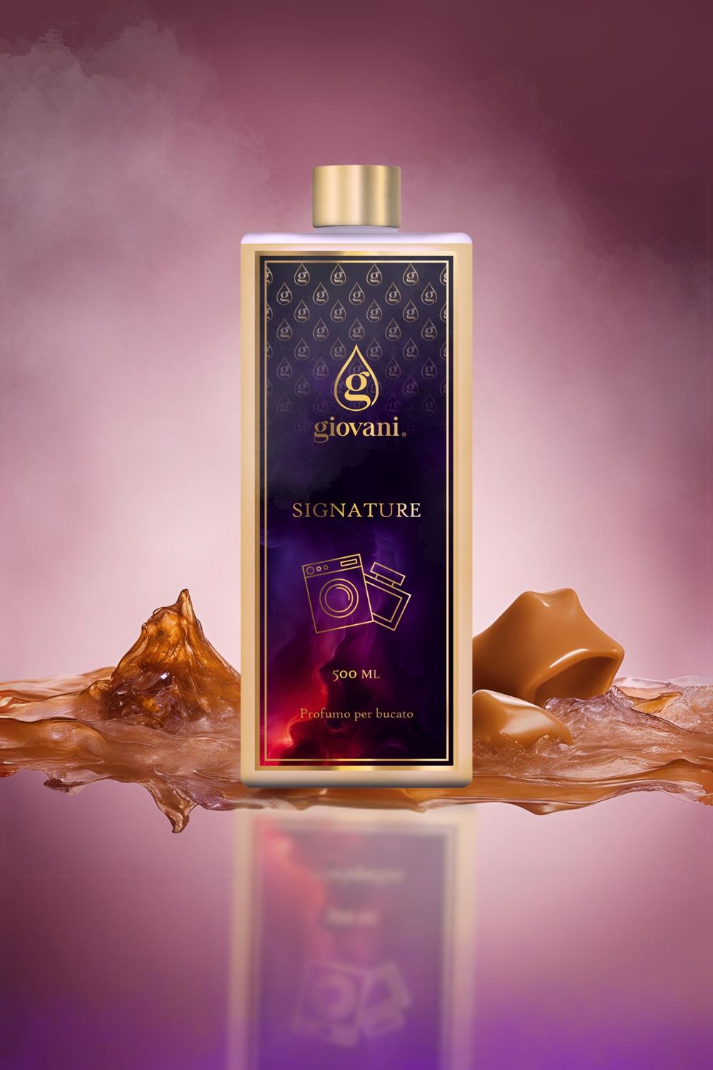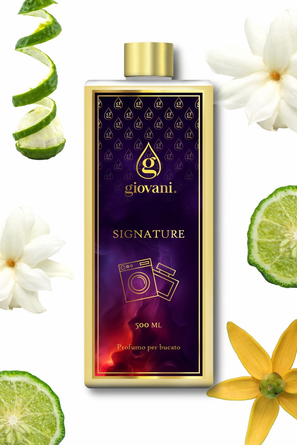 Imaginez un palais paré d'or et de velours rouge, avec des fenêtres en cristal scintillant sur toute la longueur des murs. L'air est imprégné d'un délicat parfum de mandarine fraîche, de délicieuses notes de jasmin et de caramel, mêlées à une touche d'essences boisées. C'est l'atmosphère qu'évoquera Signature, le nouveau parfum de lessive exclusif de Giovani®.